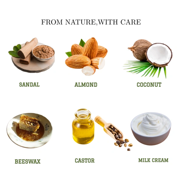 Tuna's Herbal Infused Sandal Soap – Homemade in Kerala Indulge in the timeless charm of Kerala’s natural beauty with Tuna’s Herbal Infused Sandal Soap. Crafted with nourishing plant-based ingredients and enriched with sandalwood extract, this homemade soap deeply cleanses, hydrates, and rejuvenates your skin with every wash. Experience a refreshing bathing ritual that’s gentle on your skin and rich in nature’s goodness. Key Benefits ✅ Infused with Sandal Helps improve skin tone and texture Soothes irritation and reduces blemishes Leaves a lingering, calming sandalwood fragrance ✅ Coconut & Castor Oil Blend Deeply moisturizes and softens the skin Supports natural skin barrier and elasticity Enhances lather for a smooth cleansing experience ✅ Almond Oil & Milk Cream Nourishment Rich in vitamin E and essential fatty acids Keeps skin supple and youthful Naturally hydrates dull, dry skin ✅ Beeswax Protection Forms a breathable protective layer on the skin Locks in moisture without clogging pores Helps heal cracked or rough skin ✅ Plant-Based Glycerine & Stearic Acid Retains skin’s natural moisture Enhances texture and smoothness Suitable for all skin types, including sensitive skin ✅ Homemade with Love in Kerala Small-batch, handcrafted for purity and quality Free from harsh chemicals and detergents Made using traditional Kerala soap-making techniques Perfect for Daily Use Gentle cleansing without drying the skin Suitable for face and body Ideal for men and women